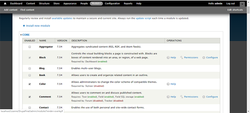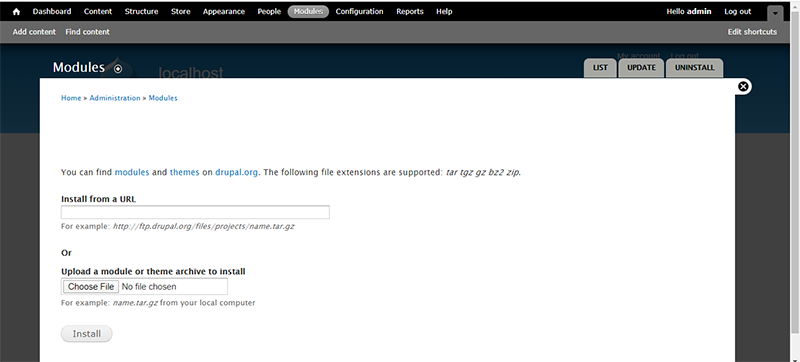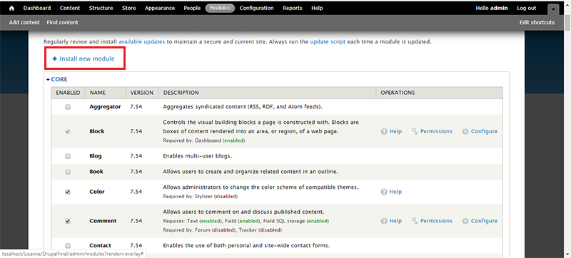 Please log into Drupal admin panel, you will see page similar like below and then click on the "Modules" tab