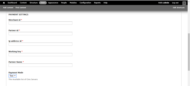 Once you browse the "cms-drupal" Payment gateway you will see like below screen