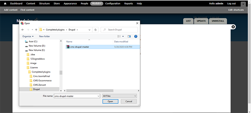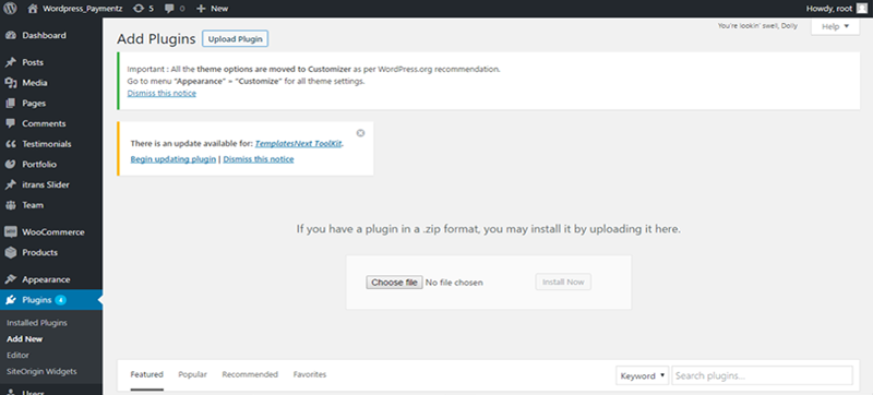 - After clicking on a "Choose File" button, a small search dialog box will be displayed, now search for the zip file (plugin provided by as payment-woocommerce-master) and the click on "Open".