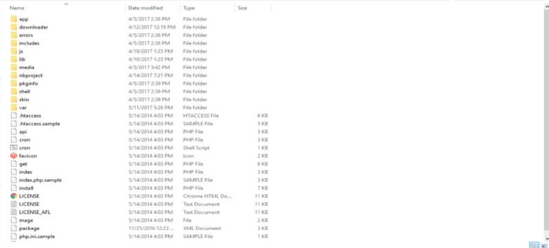- Extract the zipped "cms-magento" and you will find the following folders as shown in the below screenshot