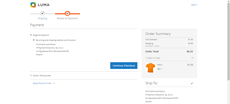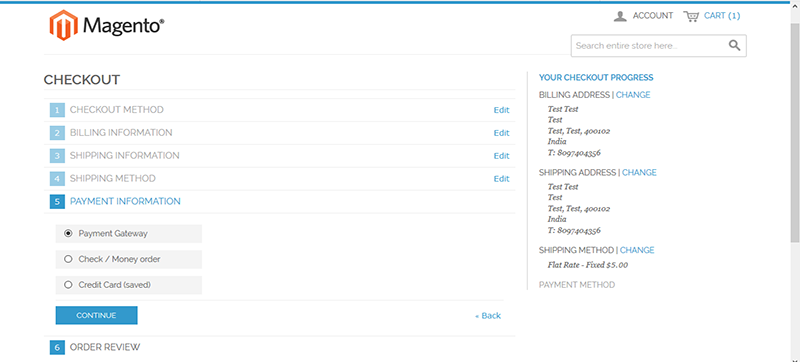 Now you can check the Payment Method on Magento Website [front end page] by adding product to cart as shown in below screenshot