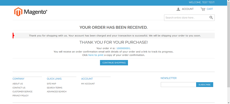 As soon as you click on the continue button you will be redirected back to the merchant website and you get to see success or failed or canceled message depending upon your transaction. See the below screenshot for your reference.