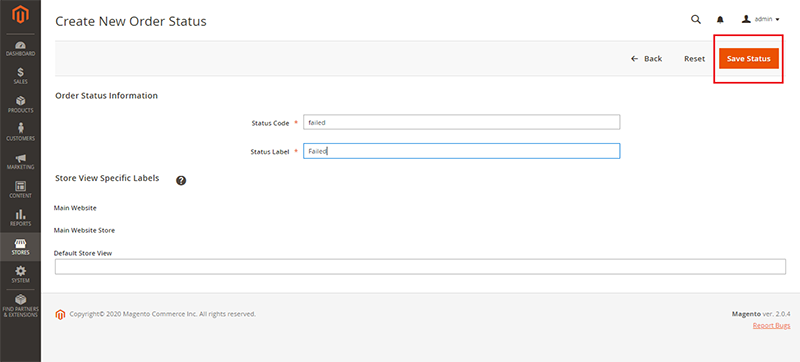 - Enter Status Code as 'failed' and Status Label as 'Failed' and click on Save Status button