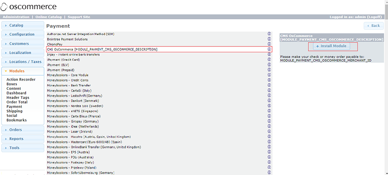 Locate [MODULE_PAYMENT_CMS_OSCOMMERCE_DESCRIPTION] and click on it. See the below screenshot for your reference.