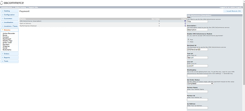 Extract the zipped OsCommerce Plugin, copy and paste all the contents of 'CMS_Oscommerce' folder in the root directory of OsCommerce.