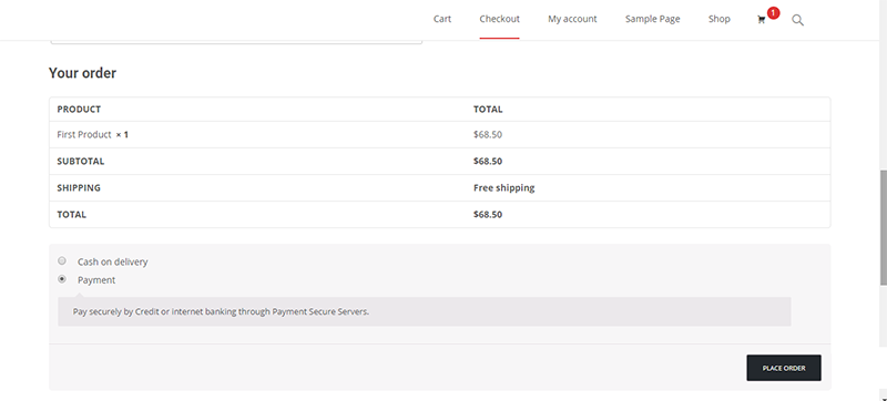 On checkout page you will see the payment gateway method as shown in the below screenshot
