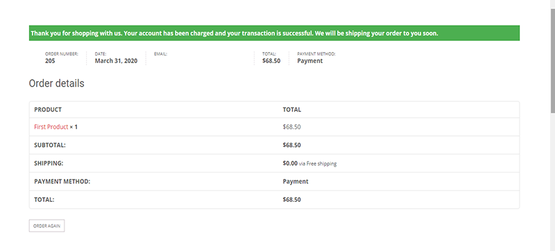 Now, you will be redirected back to merchant’s website and you will see the success message