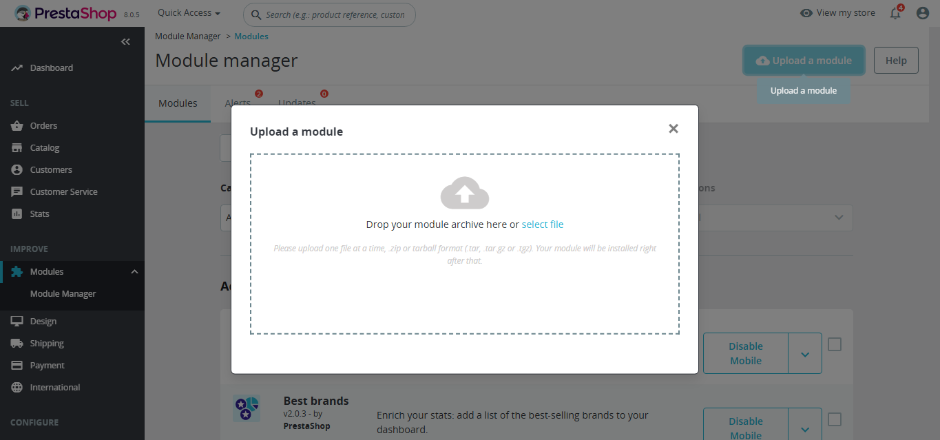- Select paymentprestashop_v8.zip file and after installation click on configure.