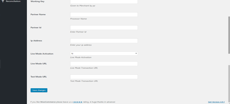 - In the following page (Figure 10), please tick on "Enable pz-woocommerce Payment Module" link. Also fill all the technical details received from and click on "Save Changes" on the bottom of the page (Figure 11).