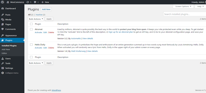 - After activating the plugin, the following screen will be displayed (Figure 7). Click the "WooCommerce -> Settings" link from the left side navigation panel.