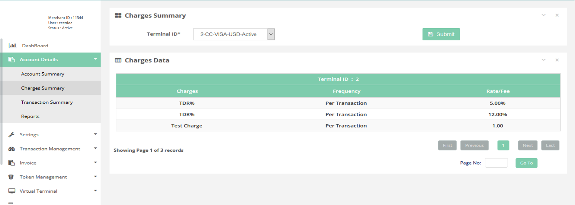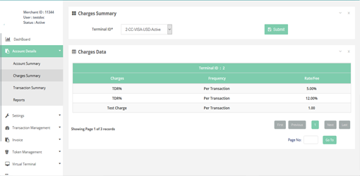 In this page you can see the charges summary per terminal basis.