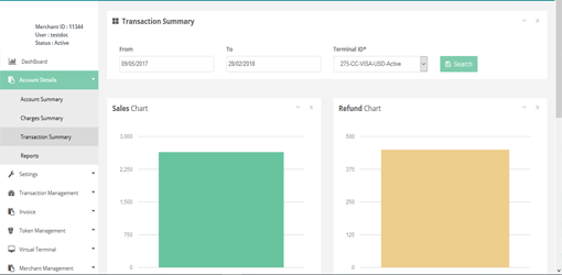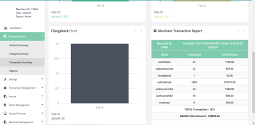 After Login you need to click on Transaction Summary section under Account Details tab in the left navigation bar of Merchant’s back office.