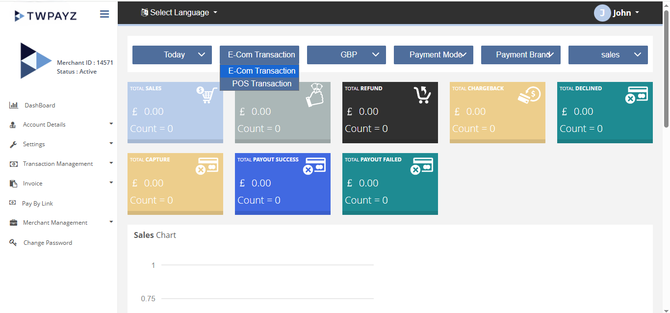 After Login you need to click on Dashboard section in the left navigation bar of Merchant’s back office.