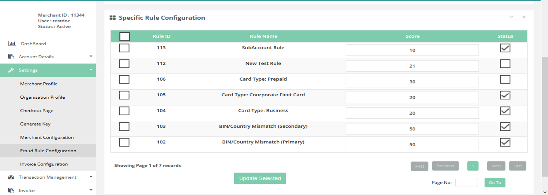 After login you need to click on "Fraud Rule Configuration" section under "Settings".