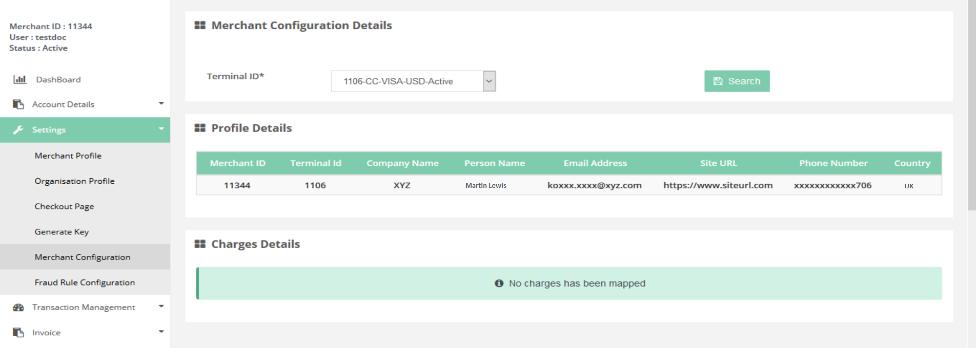 In this page you can retrieve your configuration information as per Terminal ID selection.