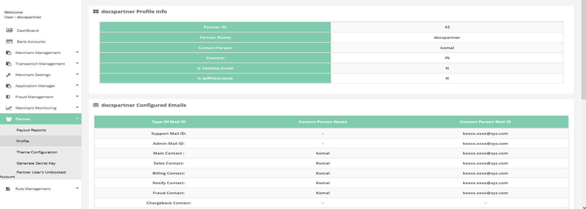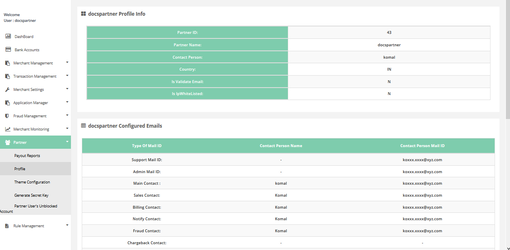This section displays all partner related information and settings.