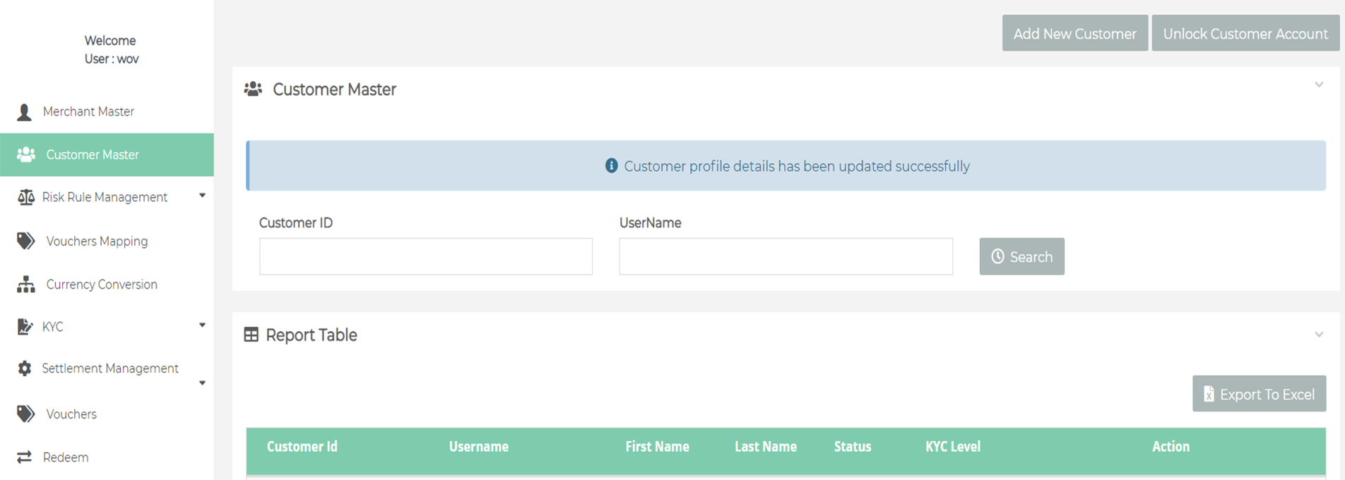 After login you need to click on "Customer Master" tab in the left navigation panel of Partner's back office.